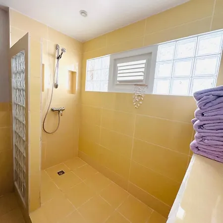 Villan vetter mot trädgården. Badrumsfaciliteterna i Palm Bay Family Villa Curacao inkluderar också en duschkabin och en separat toalett. I badrummen finns också torktumlare, badlakan och handdukar för din bekvämlighet.