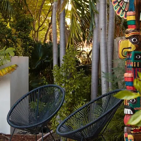 Utsikten över trädgården erbjuds till gästerna på Palm Bay Family Villa Curacao. - ❓